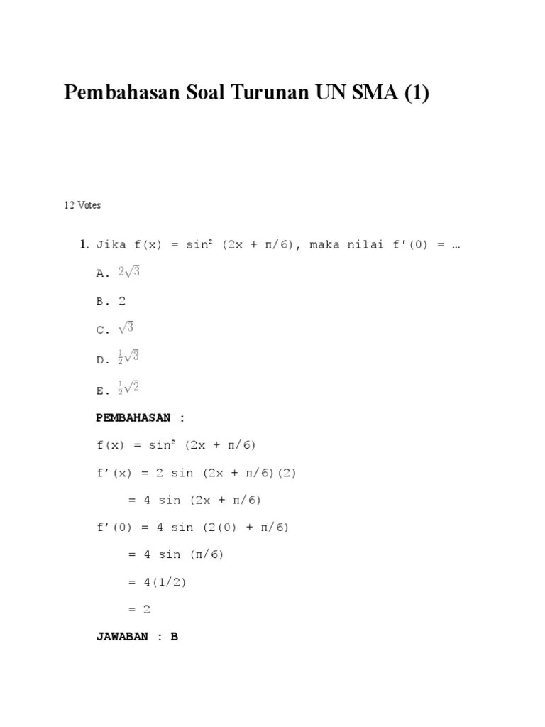 Pembahasan Soal Turunan Un Sma 3 : Pembahasan Un 2019 Persamaan Garis Singgung Matematika Ipa : Cek juga paket pelajaran dari .